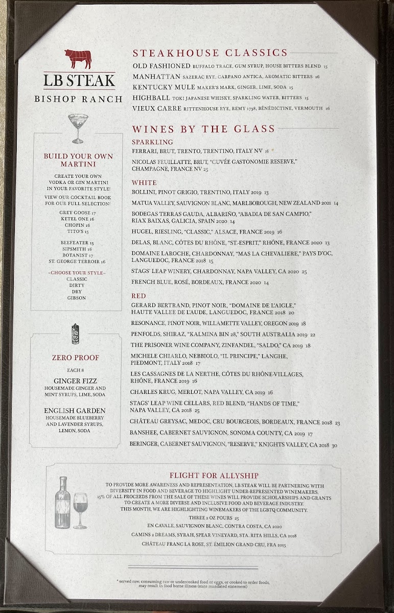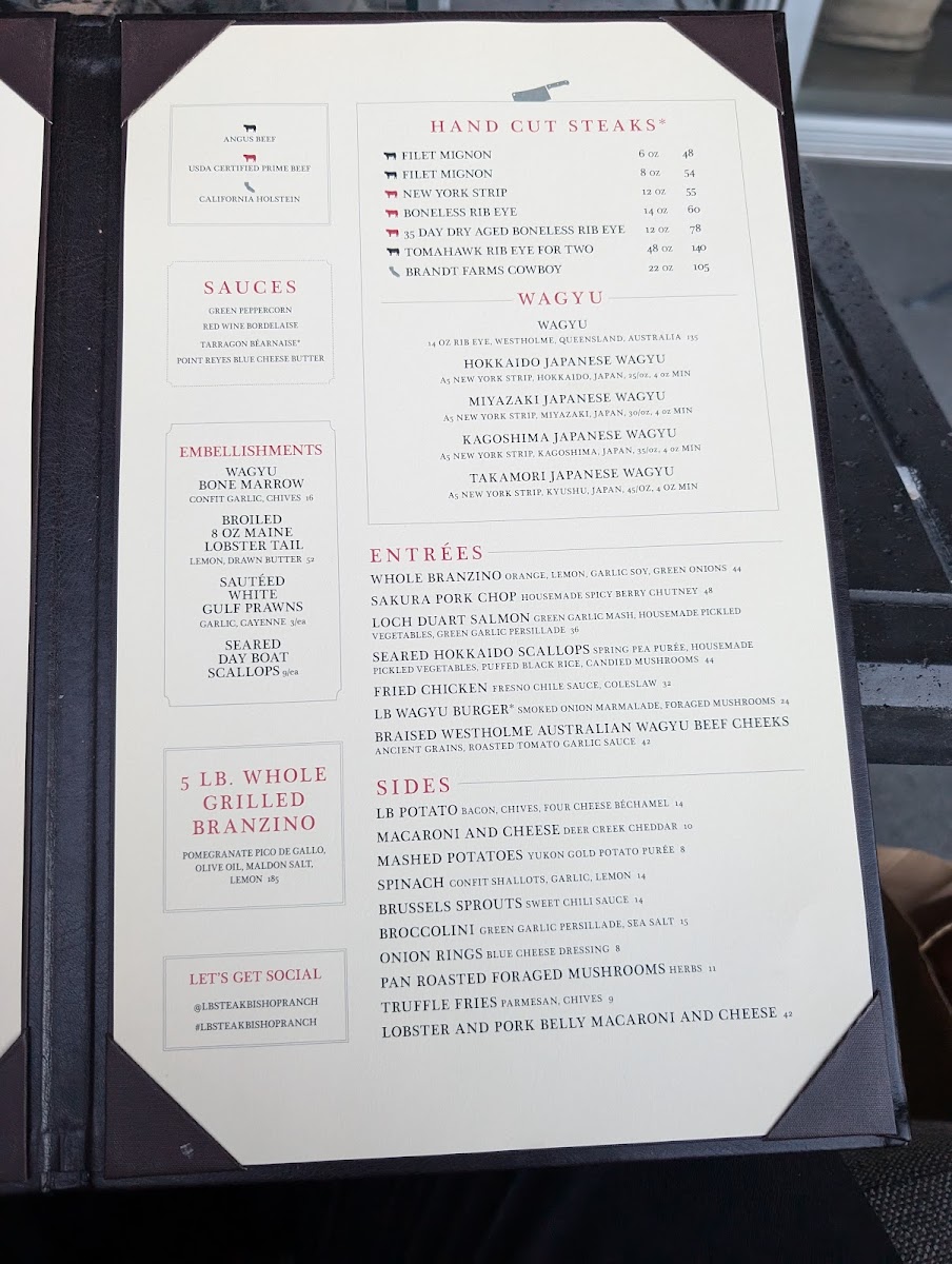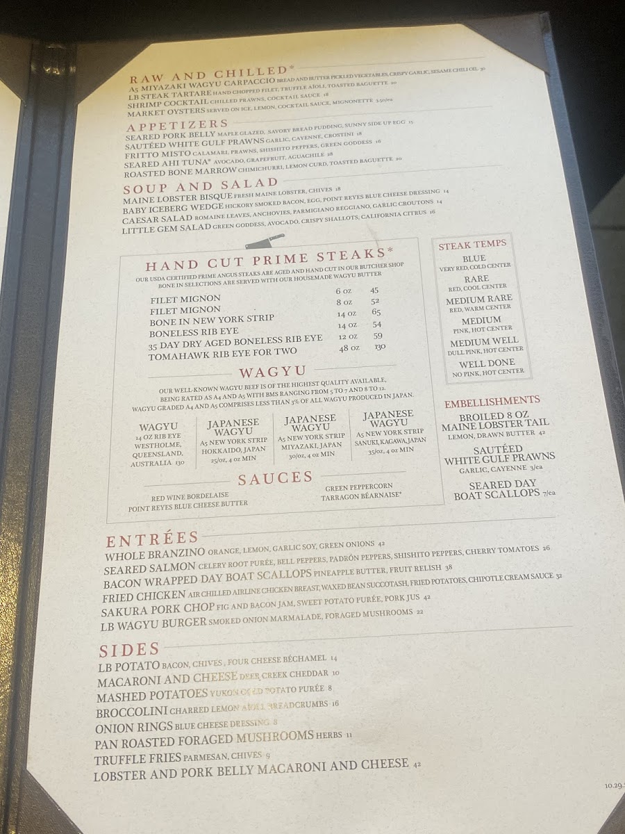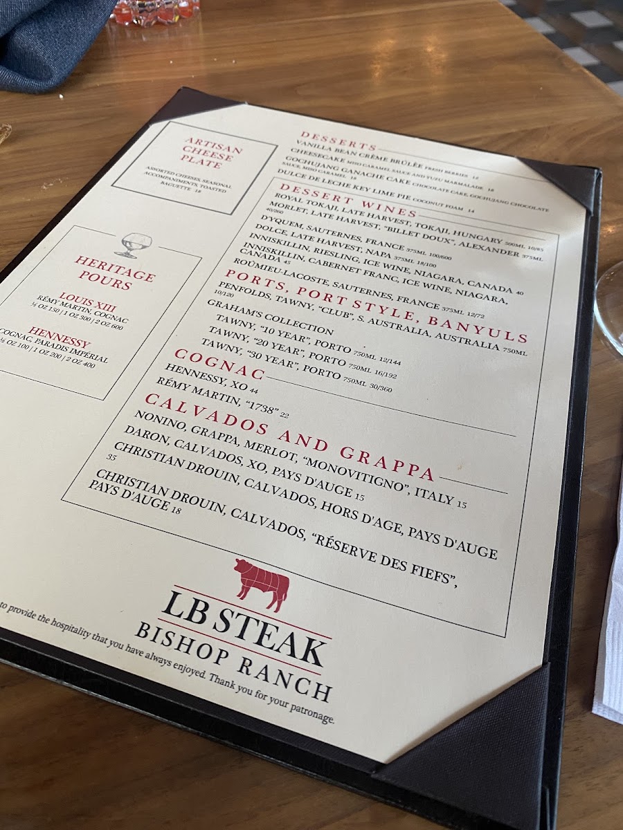 LB Steak - City Center Bishop Ranch Menu